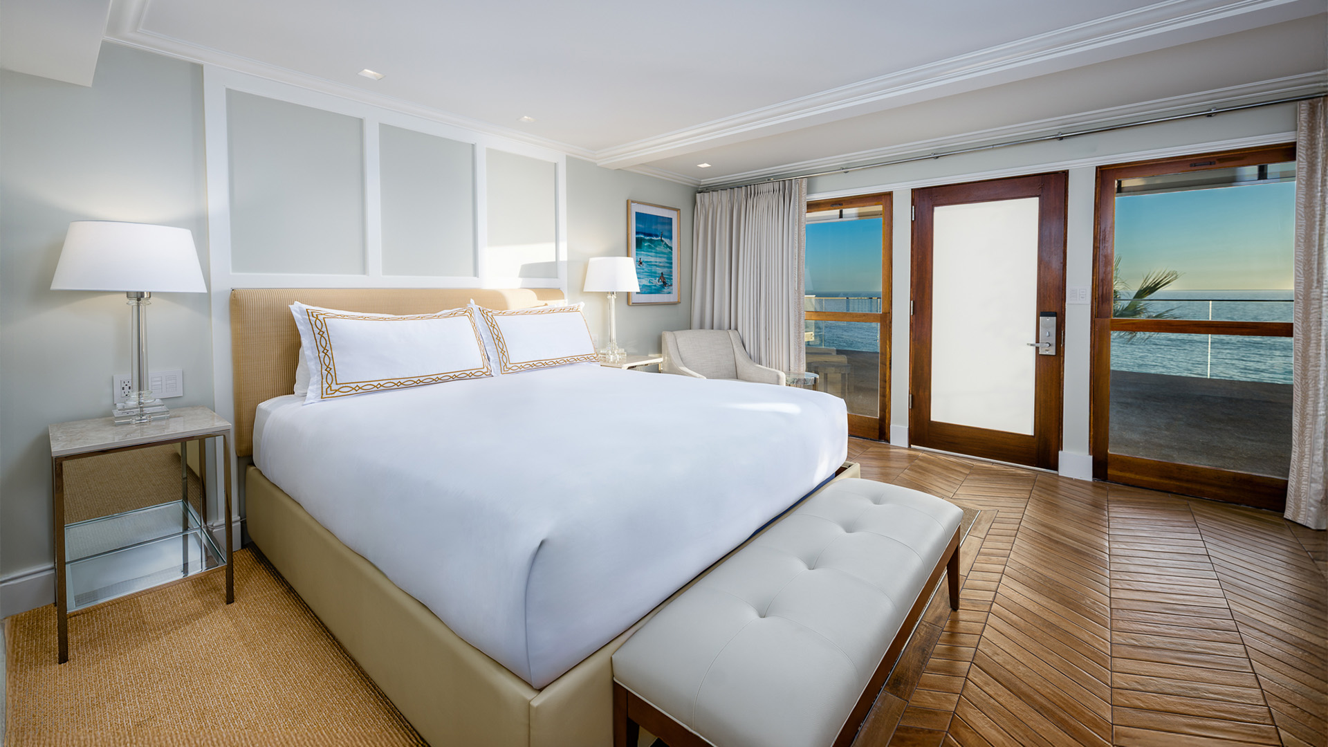 Wake to ocean views from your king-sized bed, beckoning you to your private balcony. With generous space and a deep soaking tub overlooking the water, this is your place to find a moment of peace.