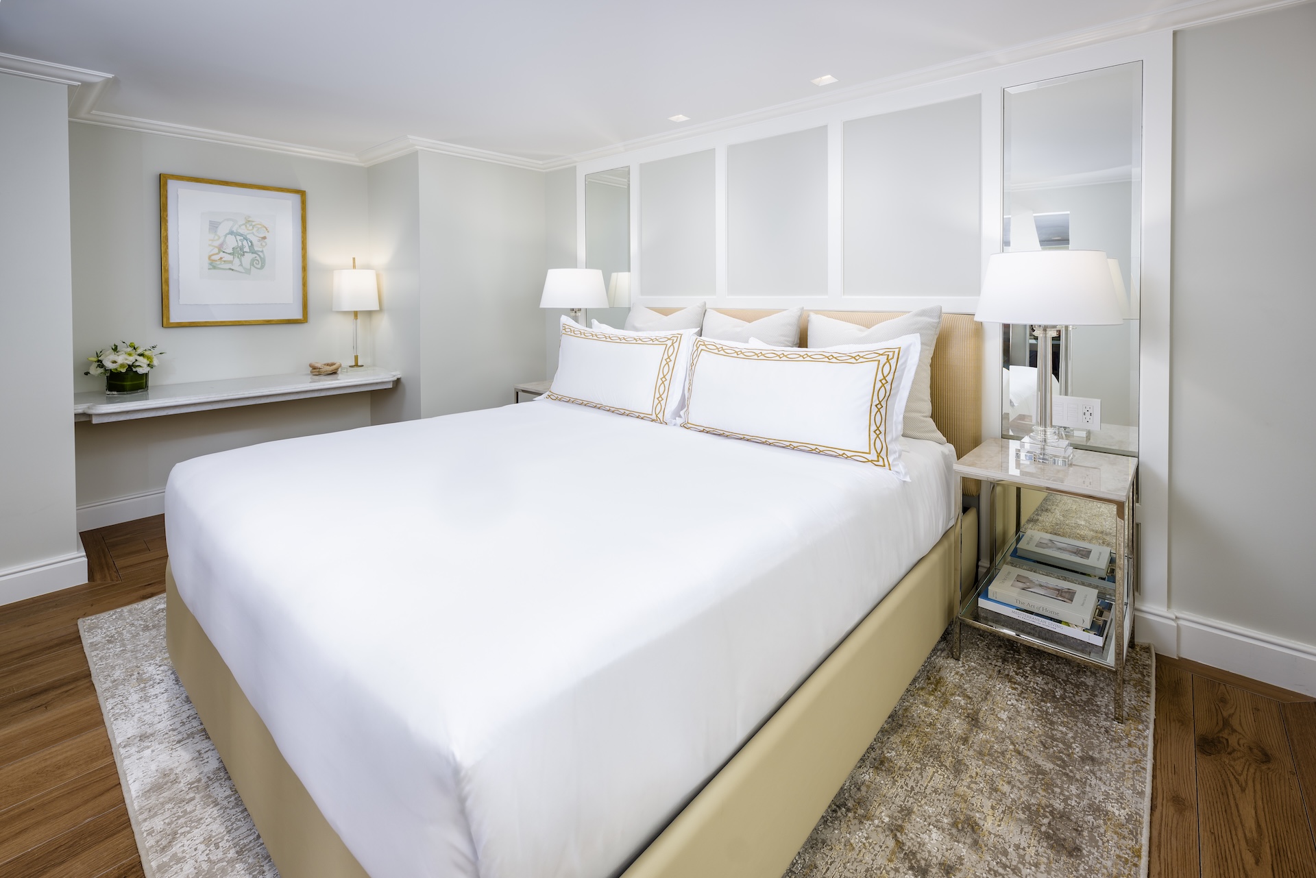 A home away from home, this suite is configured like a mini apartment, with a luxurious king bedroom and a separate, spacious living room with sleeper sofa, dining table, and well-appointed bar.