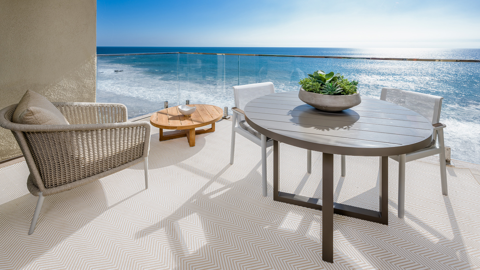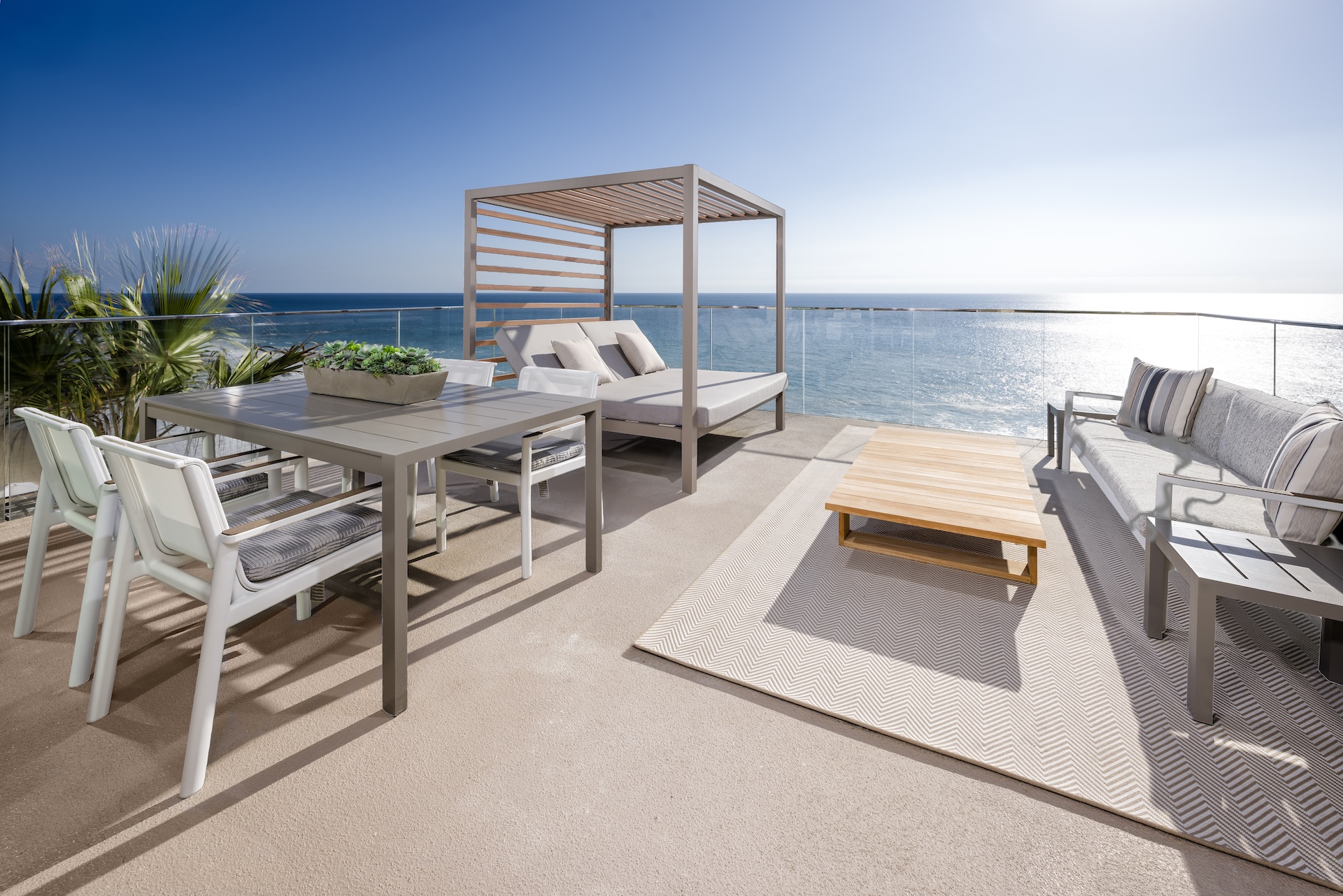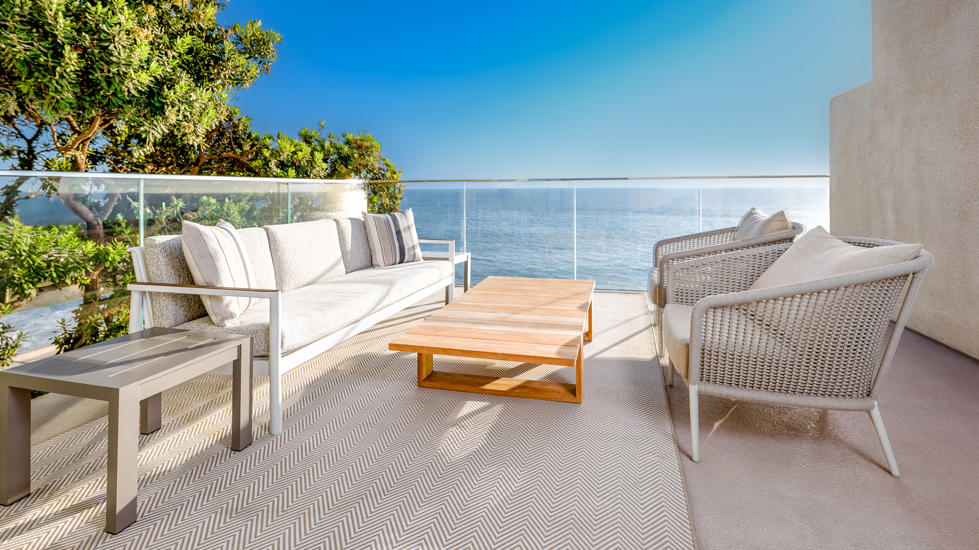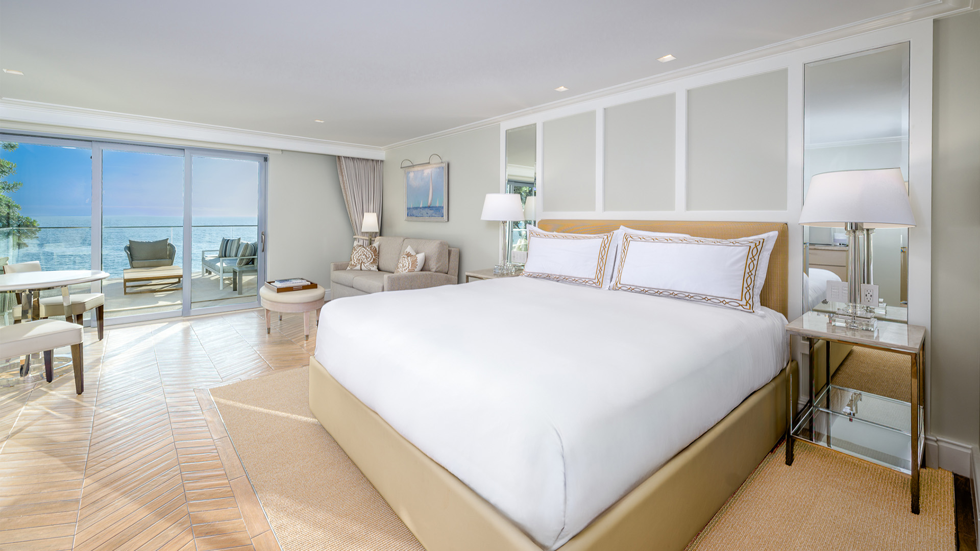 Step out onto your glass-enclosed balcony and be met with panoramic views of the Pacific. Styled as a private coastal escape, this expansive suite features a sumptuous king bed and sleeper sofa.