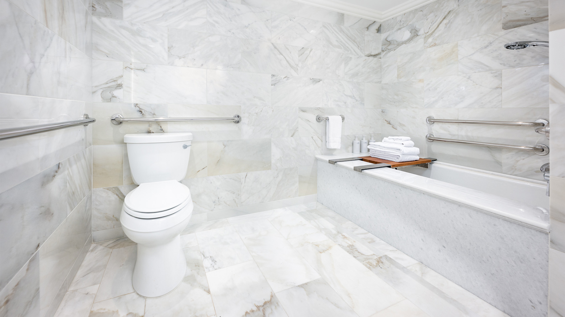 Accessible rooms are available with either a transfer shower or a roll-in shower and permanent fold-down seat. Shower chairs and transfer seats, as well as audio and visual assistive devices, are available upon request.